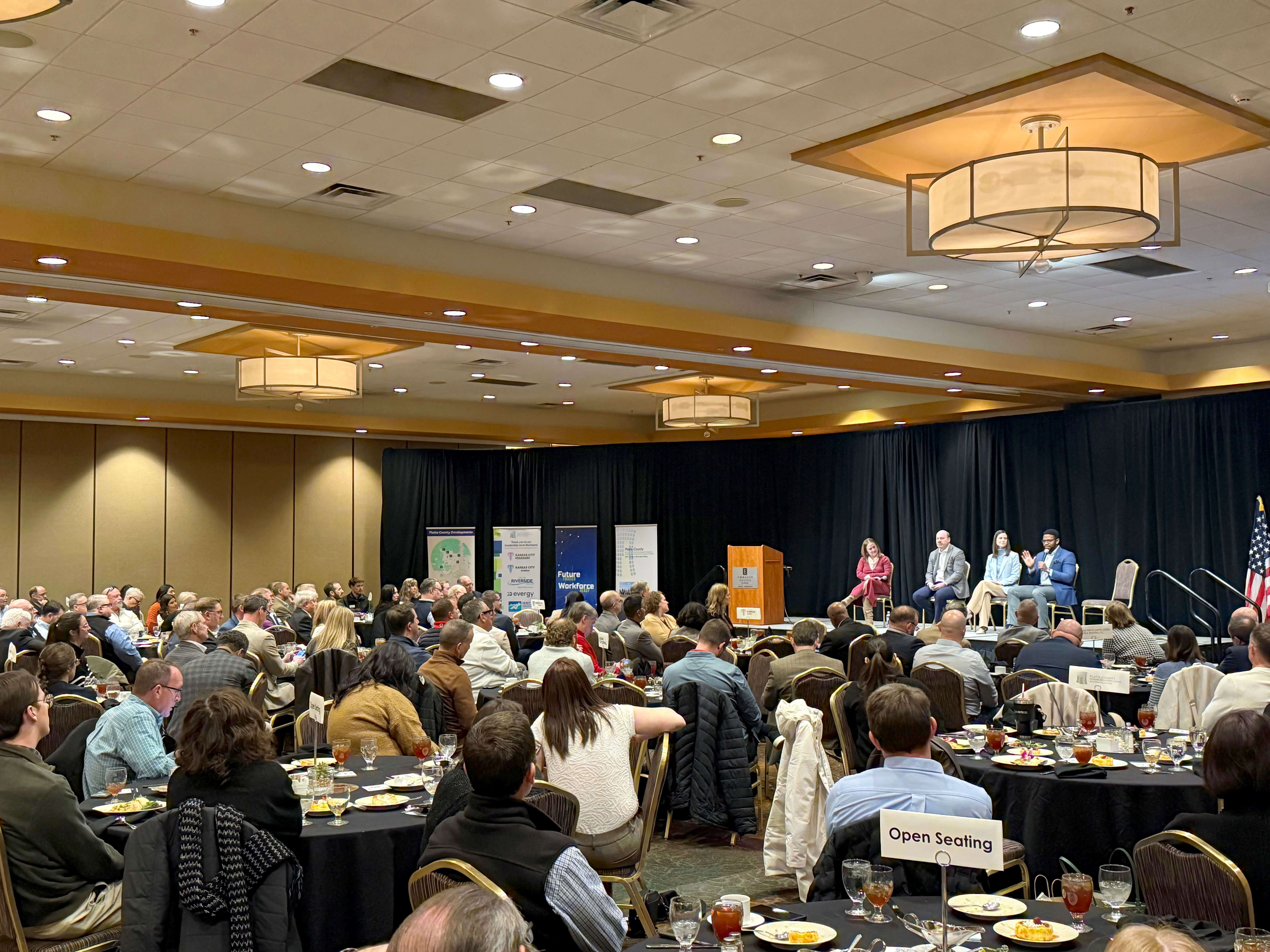 The panelists were then welcomed to the stage, each offering a unique perspective from their respective sectors, including energy, technology, and development. The conversation covered a wide range of topics, including short and long-term benefits of data centers for a community. During the initial construction phase, thousands of skilled trades workers will be needed to build these large-scale data center campuses. Once completed and in operation, these campuses will employ 30 to 50 high-paying IT jobs to maintain the facilities.